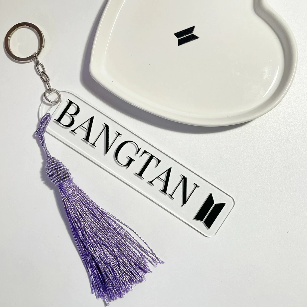 O Chaveiro Bangtan é a combinação perfeita entre estilo e funcionalidade! Com um design moderno e leve, ele não só mantém suas chaves organizadas, mas também é uma excelente marca páginas.
